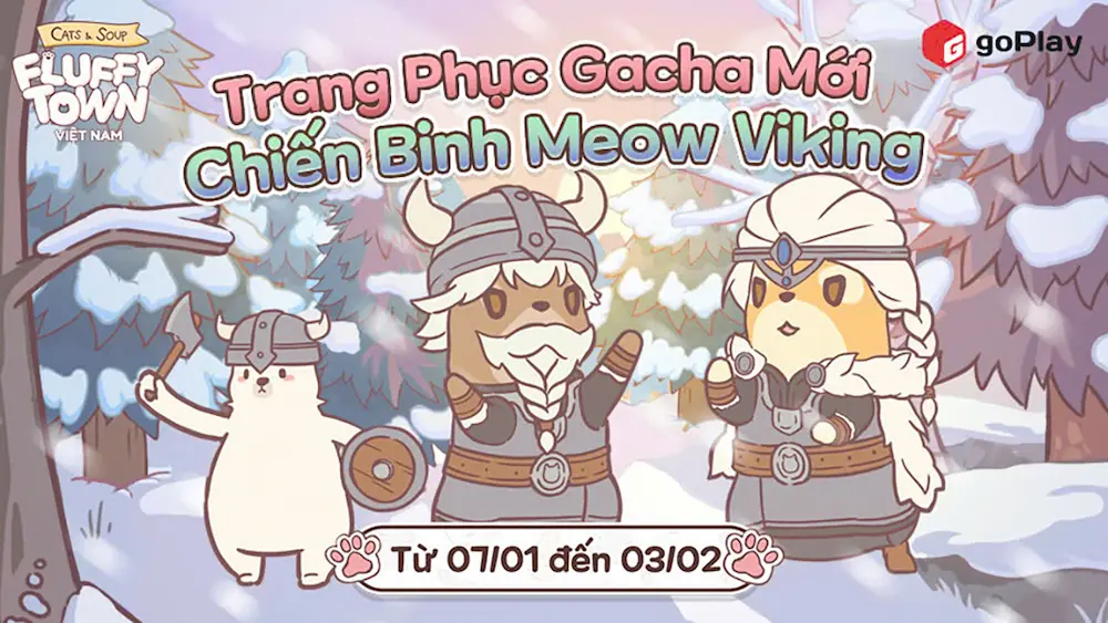 Tiếp nối chuỗi nội dung làm mới trải nghiệm người chơi trong đầu năm 2026, Cats & Soup: Fluffy Town Việt Nam cho ra mắt trang phục gacha mới mang tên “Chiến Binh Viking”, lấy cảm hứng từ hình tượng chiến binh Bắc Âu quen thuộc, được tái hiện theo phong cách dễ thương đặc trưng của trò chơi.