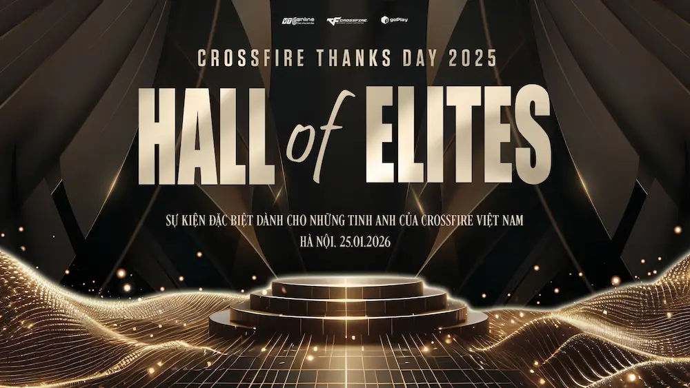 Tiếp nối tinh thần đó, Crossfire Thanks Day 2025 chính thức trở lại với chủ đề Hall of Elites – Đại Sảnh Tinh Hoa, đánh dấu bước nâng cấp rõ nét về quy mô tổ chức. Sự kiện dự kiến diễn ra vào ngày 25/01/2026 tại Hà Nội, hướng tới không gian vinh danh đẳng cấp, quy mô lớn và trải nghiệm được đầu tư theo tiêu chuẩn cao cấp 5 sao.